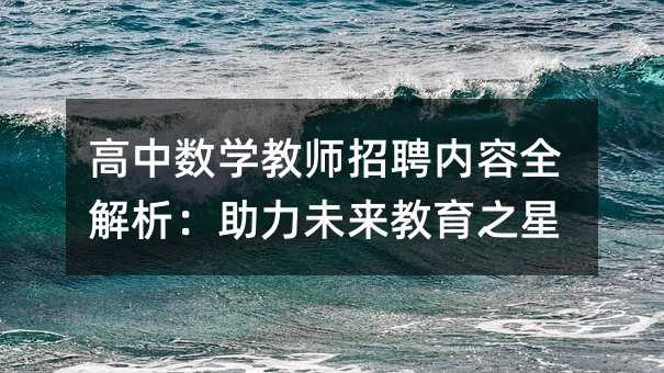 在教育的广阔天地里,高中数学教师扮演着举足轻重的角色。他们不仅是知识的传递者,更是学生思维方式的塑造者,是连接学生与数学世界的一座桥梁。对于即将投身这一神圣职业的求职者而言,了解高中数学教师招聘的具体内容,无疑是迈向成功的重要一步。